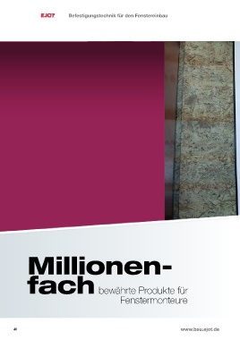 Fenstereinbau Kopplung und Aufdoppelungeinbau Befestigungstechnik für den Fenster Kopplungsbohrschrauben Fenstereinbau Kopplung / Aufdoppelung Millionen- fach bewährte Produkte für Fenstermonteure 40 www.bau.ejot.de