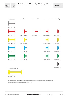 Die Befestigung der Aufnahmen und Anschläge erfolgt mit handelsüblichen Schrauben: